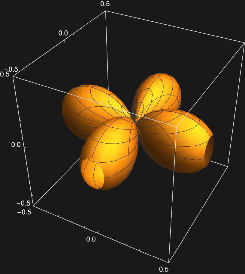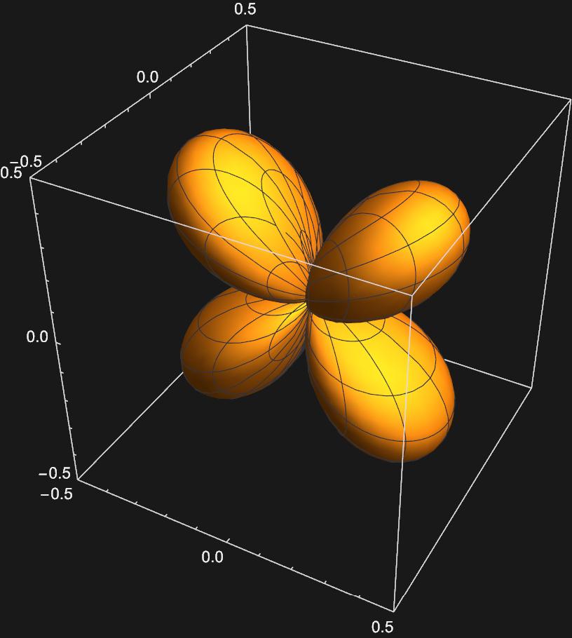 \(d_{x^{2}-y^{2}}:\frac{1}{\sqrt{2}}(Y_{2,2}(\theta , \phi)+Y_{2,-2}(\theta , \phi))\)