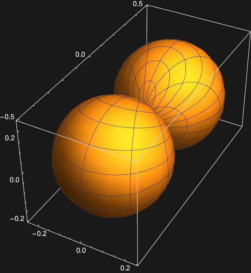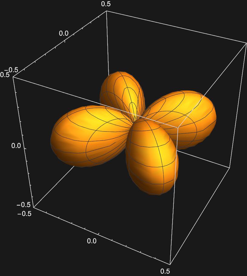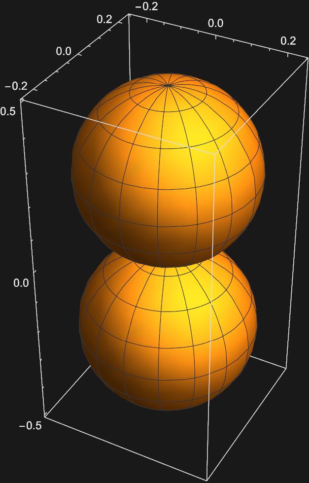 We can perform a similar excercise to get the five d-orbitals we are familar with: \(d_{z^{2}}:Y_{2,0}(\theta , \phi)\)