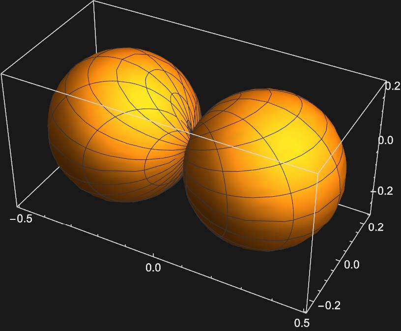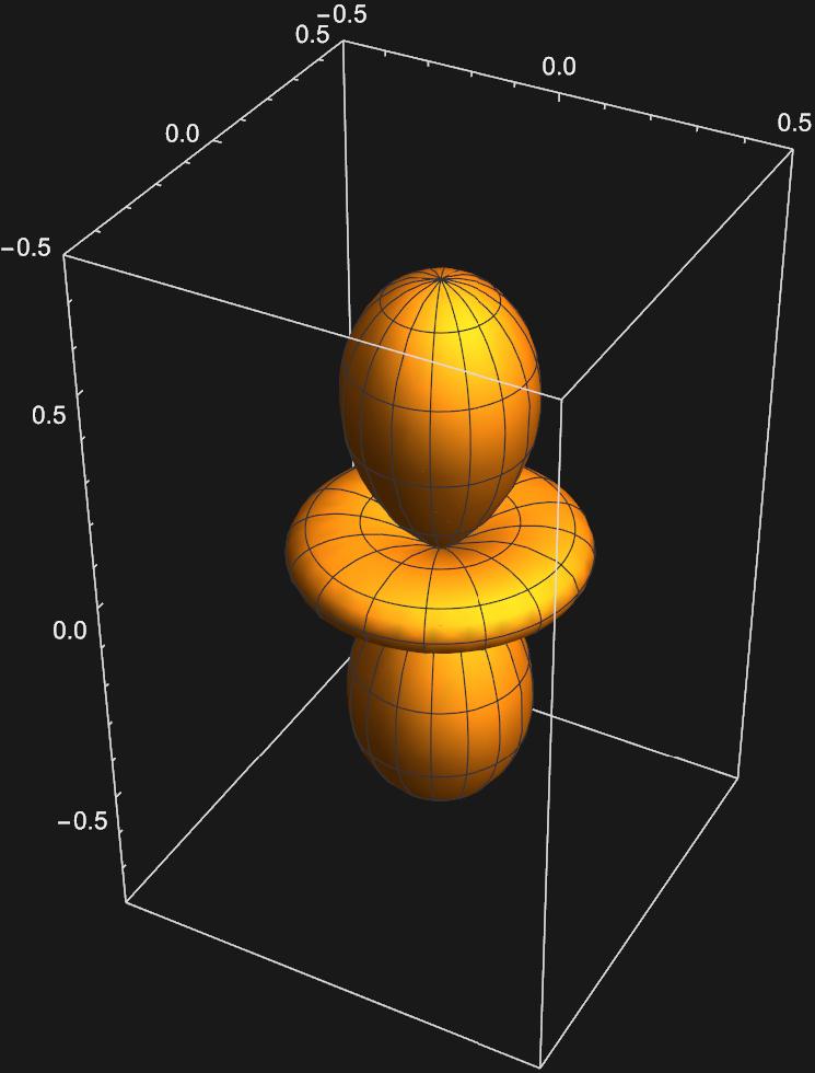 This appears to be an s-orbital, as we expect from general chemistry. But it gets more interesting as we try to graph the 3 spherical harmonics for \(l=1\)